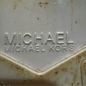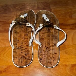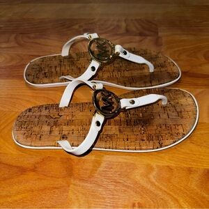 MICHAEL KORS White Jelly Cork Thongs Flat Sandals Size 8 MK Gold Logo Flip Flops
