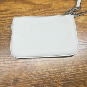 MICHAEL KORS White Leather Wristlet MK Zip Pouch Wallet Silver Hardware
