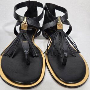 MICHAEL KORS Winslow BLACK Leather Gold-Lock- Fringe GLATIATOR Sandals Size 10M.
