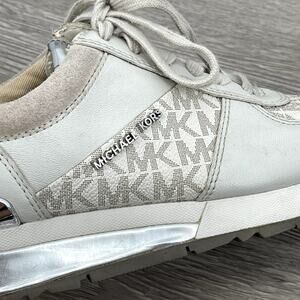 MICHAEL KORS Womens Allie Monogram Lace Up Logo Fashion Sneakers Vanilla - Sz 7