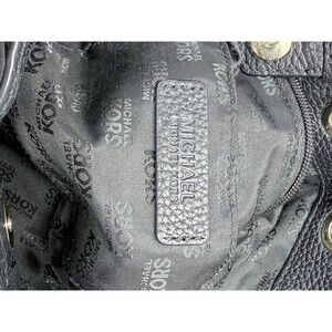 MICHAEL KORS Womens Black Leather Purse Drawstring Bucket Hobo Bag Gold Hardware