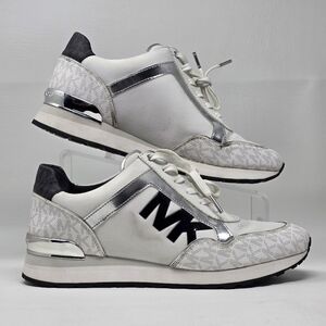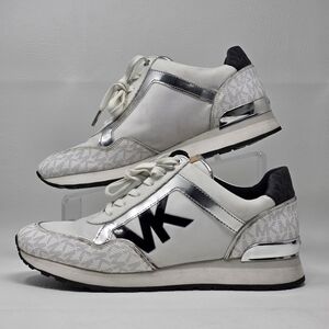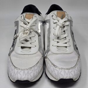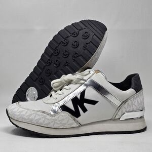 Step out in style with these Michael Kors women's sneakers. Featuring a chic white and silver design, these shoes offer both comfort and elegance. Perfect for any casual outing.