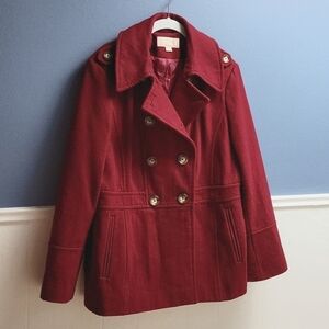 MICHAEL KORS Womens Pea Coat Wool Blend Double Breasted Red Sz Large