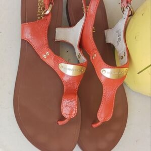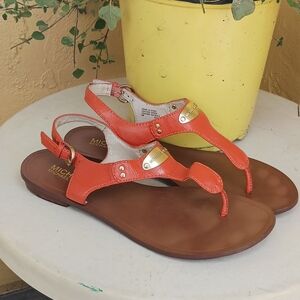 MICHAEL KORS Women's Red Orange Leather Sandals Flats