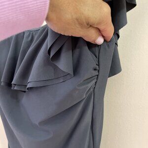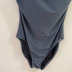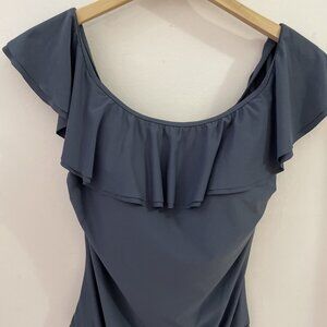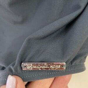 MICHAEL KORS Women’s Ruffle Neck One Piece Swimsuit Size 12 Pewter Ruched Resort