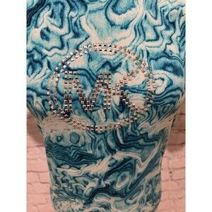 MICHAEL KORS Women's Size S Blue & White Tie Dye Silver Stud MK Logo T-Shirt