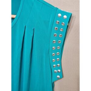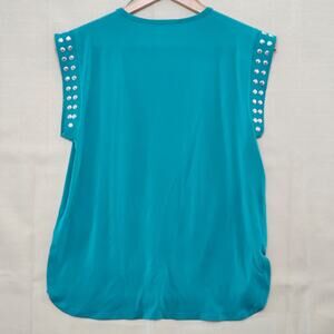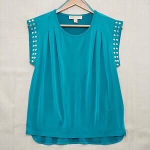 MICHAEL KORS Women's Top Island Blue w/Silver Studded Cap Sleeve Small Like New