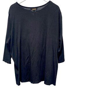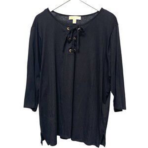 MICHAEL KORS Womens Top Plus Size 3X Black Lace Up Tee Logo 3/4 sleeve