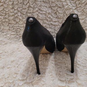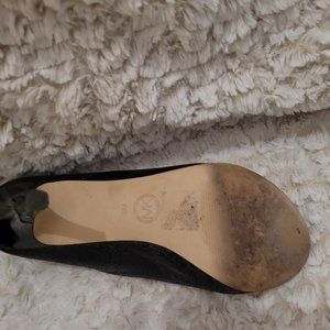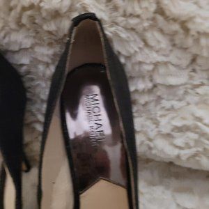 MICHAEL KORS YORK PLATFORM BLACK GLITTER PUMP OPEN TOE, size 9.