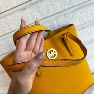 MICHAEL KORS Yellow Large Leather Jet Set Voyager Laptop Work Tote Shoulder Bag