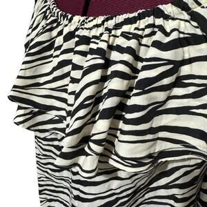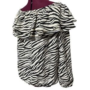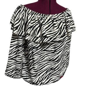 MICHAEL KORS Zebra Print Off-the-Shoulder 3/4 Sleeve Ruffle Crepe Top NWT Medium