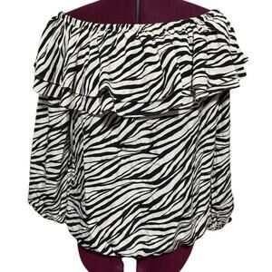 MICHAEL Michael Kors Zebra Print Off-the-Shoulder Long Sleeve Ruffle Crepe Top NWT M
