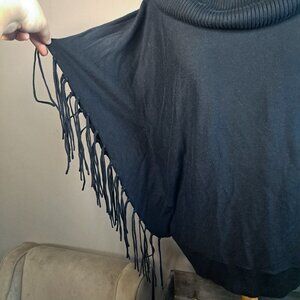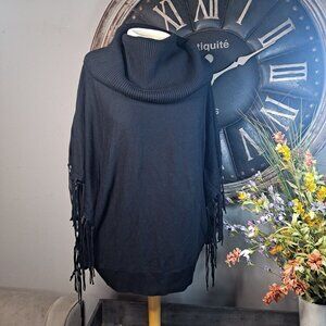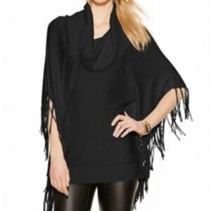 MICHAEL KORS black poncho Sweater fringe XL Cowl
