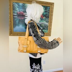 MICHAEL KORS caramel leather whipstitch shoulder bag tote