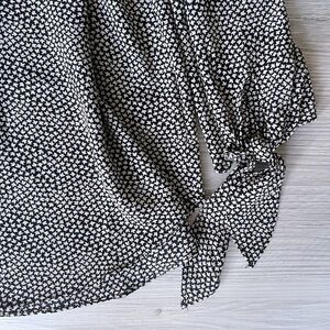 MICHAEL Michael Kors Galyn top. Off the shoulder. Curved hem. Elastic, ruffled neckline. Key hole, bow tie sleeves. Color black/bone (black with white pattern throughout). Womens size small. New with tags.