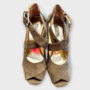 MICHAEL KORS gray suede platform peep toe strappy heels size 8
