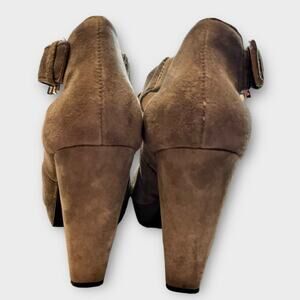 MICHAEL KORS gray suede platform peep toe strappy heels size 8 fall