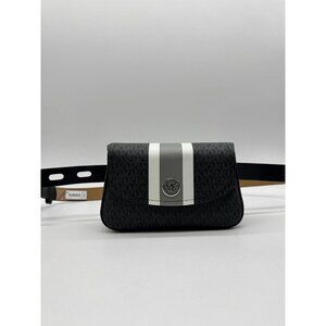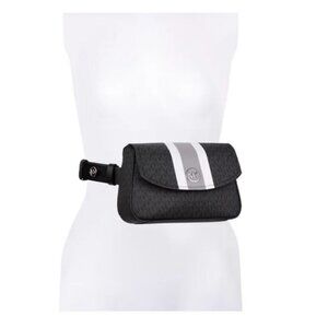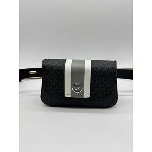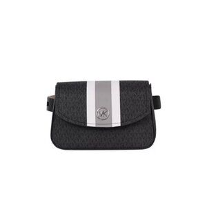 MICHAEL KORS logo coated canvas belt bag fanny pack Black with white stripe-S/M