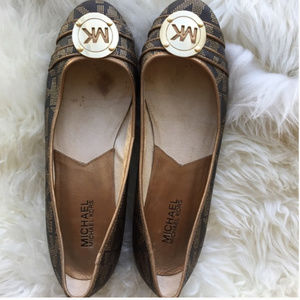 Detail: Gold and tan MK logo flats. Comfortable and perfect for the office or casual wear.