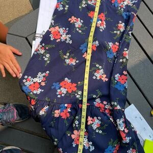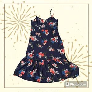 Michael Kors women’s size S. Navy floral sundress with spaghetti straps that are adjustable, a ruffle at 9 1/2 inches-up from hem.