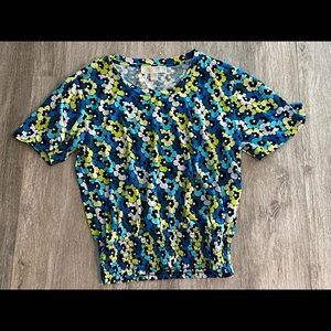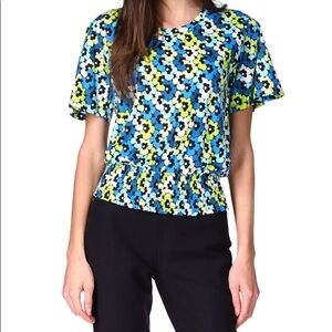 MICHAEL KORS printed smocked waist top/M