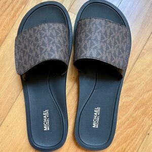 MICHAEL KORS slides Womens Sandals Brown size 10 adjustable monogram strap