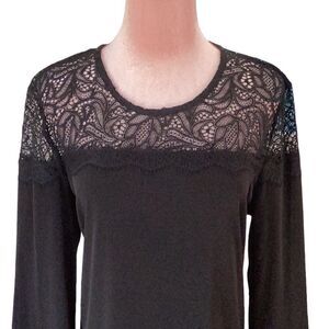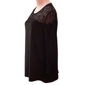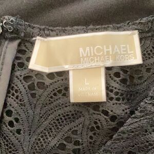 MICHAEL KORS BLACK TOP BLOUSE LACE DETAIL RUFFLE SLEEVES LARGE