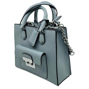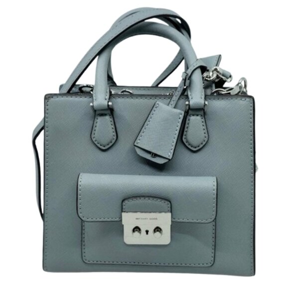 This is a Michael Kors BRIDGETTE LEATHER CROSSBODY Light Blue Saffiano Leather Mini Satchel Bag