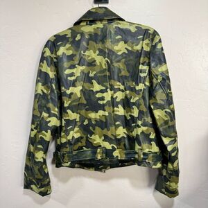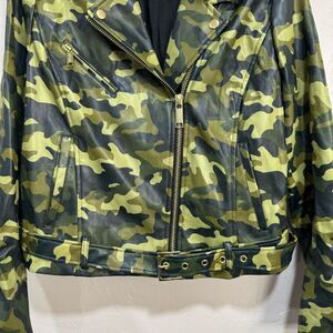 MICHAEL KORS Camo Moto Faux Leather Jacket Size XL Pit to pit 22.5” Great preowned condition