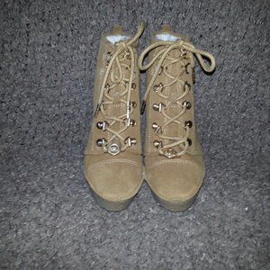 MICHAEL KORS-Chestnut Suede-Lace Up Platform Ankle Boots-Size 6M-