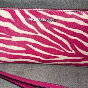 🩷MICHAEL KORS🩷Dragonfruit Jet Set Travel Zebra Print Calf Hair Large Continental Wallet/NWT