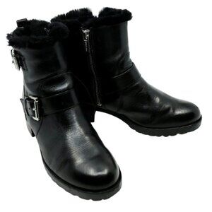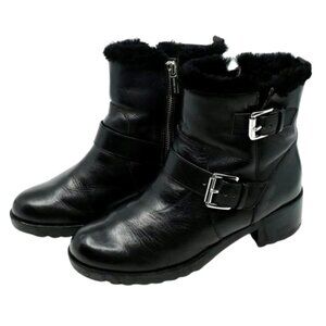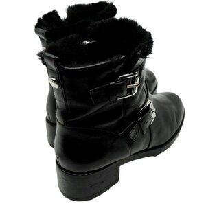MICHAEL KORS~GRETCHEN BOOTIE~Womens Sheep Fur Lining Buckle Leather Black 8