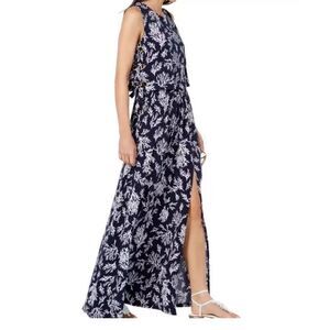 The product is a stylish Michael Kors women's maxi dress in size 2XL featuring a sleeveless design with a coral Reef print. Made of 95% polyester and 5% elastane, this lace fabric dress has a grommet-laced front slit and a long length. Designed in Vietnam, this dress exudes sophistication and elegance, perfect for any occasion.