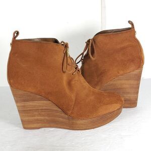 MICHAEL KORS Piece US 7,5M Brown Suede Lace Up Wedge Booties Ankle Boots .