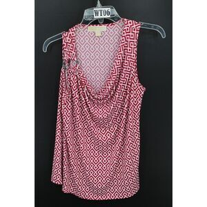 MICHAEL KORS SLEEVELESS COWL NECK MAGENTA WHITE WITH SILVER ADORNMENT SIZE L