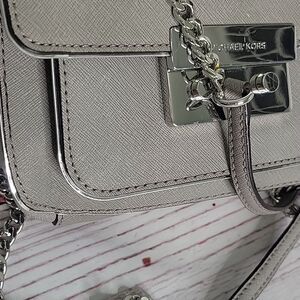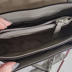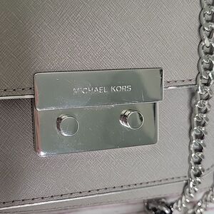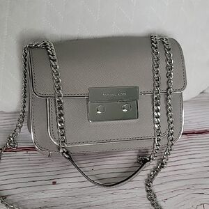 Michael Kors Sloan gray saffiano leather small crossbody bag.