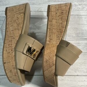MICHAEL KORZ Jilly Platform Slide Sandals in Tan Pebbled Leather SZ 7 NWOB