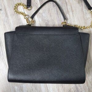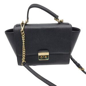 MICHAEL Kors Brandi Top Handle Satchel Black Leather Gold Chain Crossbody Medium