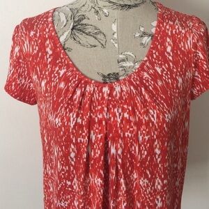 Excellent condition. Front flat under arm side to side 20”. Length 25”. 95% polyester 5% spandex.