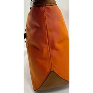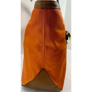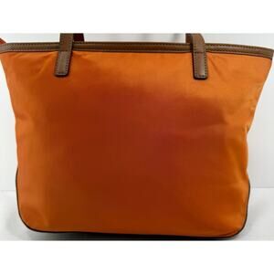 The Kempton Large Nylon Tote in vibrant orange with brown saffiano trim — a rare NWOT find!