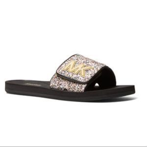 These MICHAEL Michael Kors slides will glisten on coffee runs or city walks, featuring glitter straps and the MK logo.
