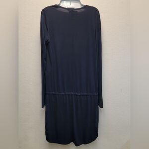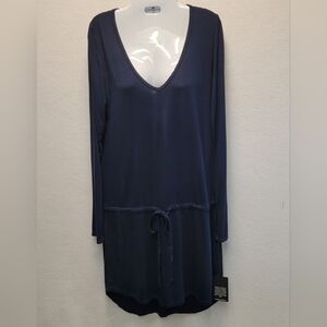 New With Tags Michael Lauren Revolve Noel women's size small oversized long sleeve vneck, drawstring waist, curved back hem, knit mini dress (bin green 1)