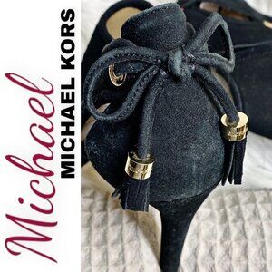 MICHAEL MICHAEL KORS Black Jennings Suede Open Toe Booties, Size 8.5