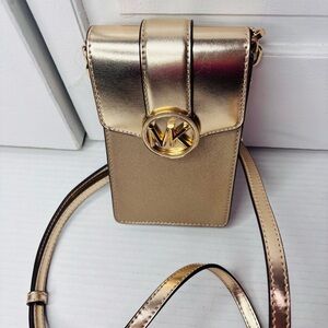MICHAEL MICHAEL KORS Carmen Gold Small Logo Smartphone Crossbody Bag