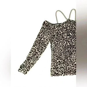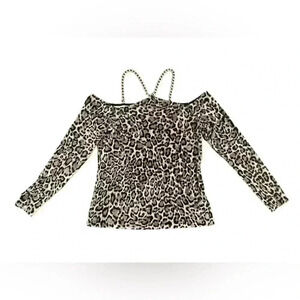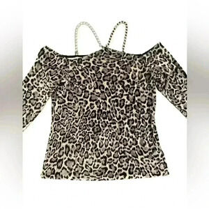 MICHAEL MICHAEL KORS Cold Shoulder Chain Pullover Animal Print Top Size Small
