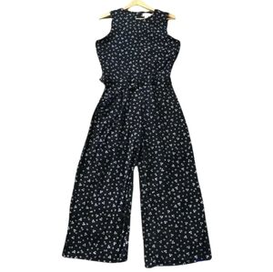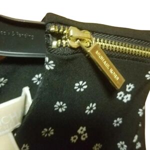 MICHAEL by MICHAEL KORS Belted Mini Floral Print Jumpsuit with zipper detail on left shoulder. Zipper and clasp closure at the back.
