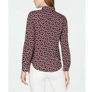 Glints of gold-tone at the zipper, pull, pockets and sleeve tabs accent the bold foulard print of this striking top from Michael Michael Kors. Point collar; exposed zip-front closure with dog tag at pull Flap patch pockets at chest; rounded hemline Long sleeves with buttoned cuffs convert to roll-tab 3/4-sleeves Polyester Machine washable