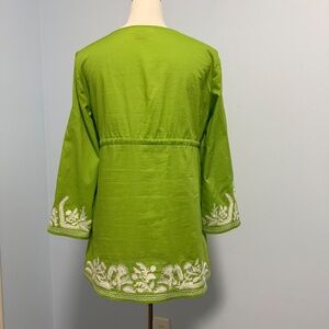 MICHAEL MICHAEL KORS GREEN EMBROIDERED 3/4 SLEEVE BOHO TUNIC TOP SIZE MEDIUM