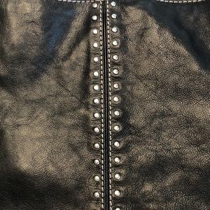 MICHAEL MICHAEL KORS Large Black Leather Tote Shoulder Bag Purse Silver Studs