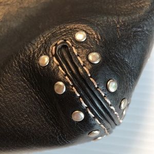 MICHAEL Michael Kors Black Leather Shoulder Bag / Tote / Purse with Silver hardware, silver studs, and exposed exterior stitching for a classic edgy style.